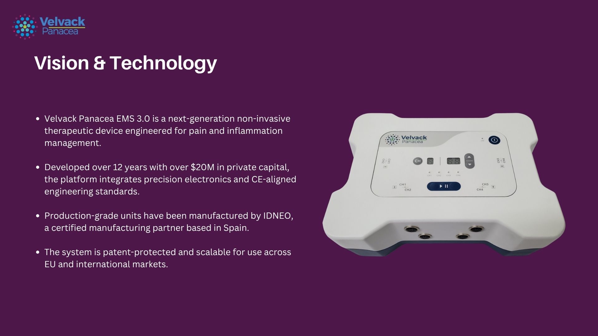 Engineered for healing. Guided by science. EMS 3.0 is the result of decades of biomedical and engineering innovation—ready to redefine non-invasive therapy. Contact us: info@panaceatech.us